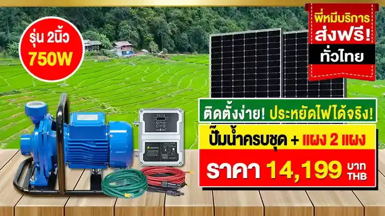 - สเปค ปั้มหอยโข่ง 2นิ้ว 1แรงม้า 750W | ใช้แผงโซล่าเซลล์ 2แผง