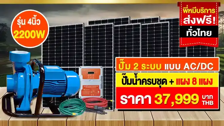 ปั้มน้ำหอยโข่งโซล่า 2ระบบ 4นิ้ว 3แรงม้า 2200วัตต์ ใช้ได้ทั้งกลางวันและกลางคืน