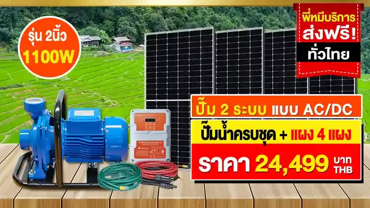 ปั้มหอยโข่ง โซล่าเซลล์ รุ่น AC/DC 2นิ้ว 1.5แรง 1100W ใช้ได้ทั้งกลางวัน และกลางคืน